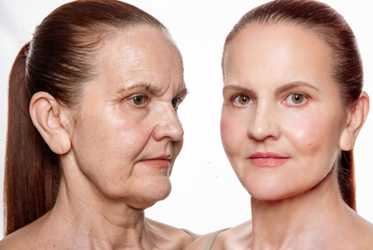 Skin aging happens due to both intrinsic factors (natural aging process) and extrinsic factors (external damage).